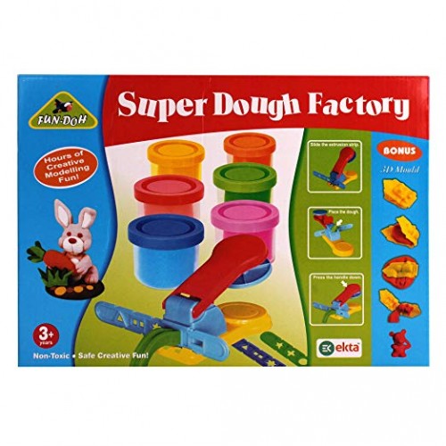 Watch your creation magically grow as you slowly push the extruder's handle down.Contains 6 tubes of colour dough, 2 in 1 extruder, extrusion strips, Modelling mould etc. It also includes 3D mould to create 3D figures.